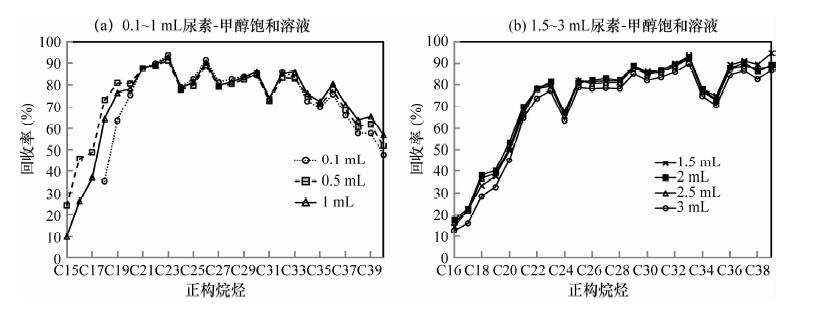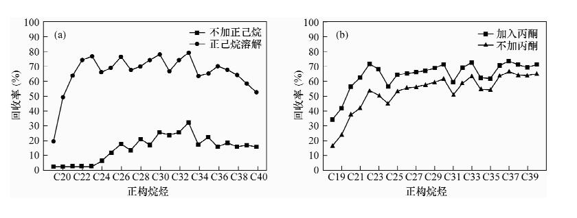 n-alkanes ranged from 79% to 104%, higer than the recoveries by the urea adduction method and 5Å molecular sieves. The precision of single carbon isotope ranged from 0.09‰ to 0.63‰ (1