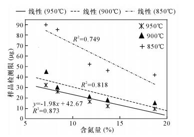 Carbon and nitrogen isotopes are essential tools to study paleoclimate, palaeoenvironment, and ecosystem. At present, carbon and nitrogen isotopes are commonly determined by Elemental Analyzer-Isotope Ratio Mass Spectrometer (EA-IRMS). Reaction temperature and sampling weight directly affect the burning of samples, and thus affect analytical precision. Using EA-IRMS technology and taking standard samples as references, the carbon and nitrogen isotope values were determined at different conversion temperatures to study the optimum reaction temperature, in order to ensure the accuracy of the analysis presented in this paper. At the same time, by analyzing the detection limits of samples with different nitrogen contents, the relationship between the nitrogen content of the sample and the lowest detection limit was determined and thus the lowest quantity of samples for accurate determination of nitrogen isotopes were also defined. The results show that reaction temperature has a significant effect on analytical precision. Analytical precision of carbon isotope is less than ±0.2‰ when the reaction temperature is either 900℃ or higher than 900℃, but the precision of nitrogen isotope can reach ±0.3‰ only when the reaction temperature is no lower than 950℃. The linear relationship between nitrogen content and detection limit was expressed as