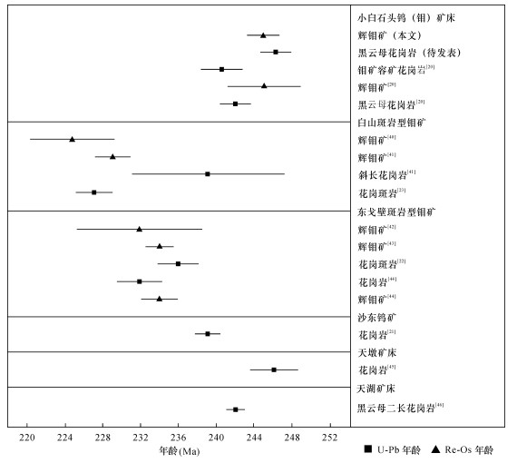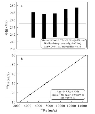 RESULTSThe molybdenite Re-Os weighted average model age and Re-Os isochron age are 245.0±1.7Ma and 245.5±4.3Ma, respectively.