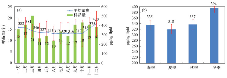 • 摘要: 多环芳烃(PAHs)是一类普遍存在于水圈、生物圈、岩石圈和大气圈的持久性有机污染物,并在各种环境介质中交换、迁移,从而影响人体健康。以母乳为介质,评价哺乳期女性和婴幼儿PAHs暴露风险具有重要意义。早期研究表明,北京母乳中PAHs浓度在全球范围内处于较高水平。本文项目组在2012-2016年间,连续采集北京地区30位哺乳期女性6个月母乳,并检测其中PAHs浓度,旨在掌握该地区母乳中PAHs残留水平、婴幼儿的暴露量,以及哺乳期母体和婴幼儿暴露风险的变化趋势与特征。通过对30位女性分娩后连续6个月内180个母乳中15种PAHs的监测,采用气相色谱-质谱法(GC-MS)测定其含量,初步研究结果表明:①15种PAHs都有检出,其中检出浓度和检出率高的单体化合物包括菲、芴、苊烯、蒽、苊和荧蒽。母乳样品中Σ15PAHs的浓度均值为348μg/kg脂质,与2005年该地区的报道值相比有下降趋势。②15种PAHs和7种高致癌活性PAHs的苯并a芘的等效致癌活性(BaPeq)浓度分别为8.53μg/kg脂质和7.89μg/kg脂质,婴幼儿每日暴露估算值分别为1.51μg/day/kg b.w.和0.19μg/day/kg b.w.,均比2005年有所下降,但高于捷克、美国、土耳其等国家婴幼儿在母乳喂养期的暴露量,低于我国兰州等重工业城市最新暴露量研究结果。③整个哺乳期,母乳中PAHs的总浓度没有明显下降趋势,但冬季可能由于采暖增加了大气中PAHs的排放,使得母乳样品中15种PAHs总浓度明显高于夏季、秋季和春季。SPSS双变量相关分析结果表明,母乳中15种PAHs的总浓度与母体年龄、身体质量指数和母乳脂肪含量不存在相关性。未来工作中需要更加充足的样品分析数据进一步证实以上研究结果。