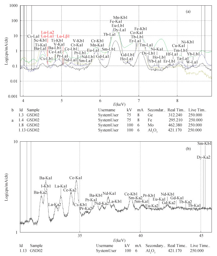 BACKGROUNDThe quantification of trace elements in geological samples depends largely on the analytical methods that require complex chemical pretreatment. High-energy polarized energy-dispersive X-ray fluorescence spectrometry (HE-P-EDXRF) has a considerable advantage for the determination of trace elements with large atomic numbers, due to its high-energy properties, which can effectively excite the Kα line of heavy elements.