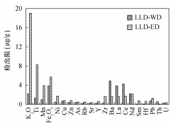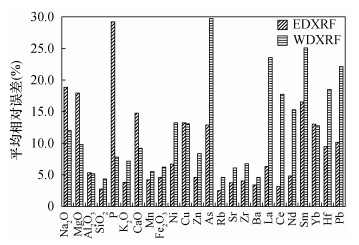 RESULTSThe Kα line was selected as the analysis line for trace elements with a larger atomic number due to less interference from the spectral line overlap, which is beneficial to obtaining the net peak intensity. Rare earth elements such as La, Ce and Nd can be accurately measured. Detection limits of the trace element Ba and rare earth elements such as La, Ce determined by EDXRF were greater than those determined by WDXRF, but lesser for light elements. For all the major and trace elements, the average of relative error of test training data was less than 15% except for Na2O, MgO, P and Sm. The average relative error of trace elements was between 2.40% and 16.3%. The accuracy of trace elements (except Cu and Yb) was significantly better than that of WDXRF. According to the evaluation method of the Europe Union, no significant difference existed between the trace elements results (except V and Th) and the recommended value of certified reference materials.