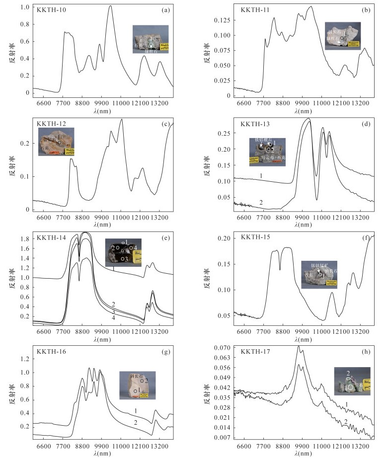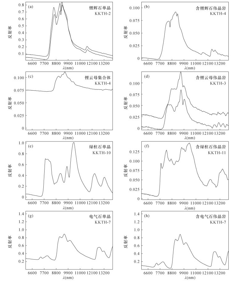 CONCLUSIONSA database of thermal infrared spectroscopy characteristics of typical minerals and rocks in the Keketuohai has been established, and the thermal infrared spectroscopy characteristics of spodumene and lepidolite, ore-bearing pegmatites and surrounding rocks in rare metal deposits have been summarized in this study. Basic data support for the identification of rare metal minerals using thermal infrared spectroscopy and the exploration of granite pegmatite deposits has also been provided.