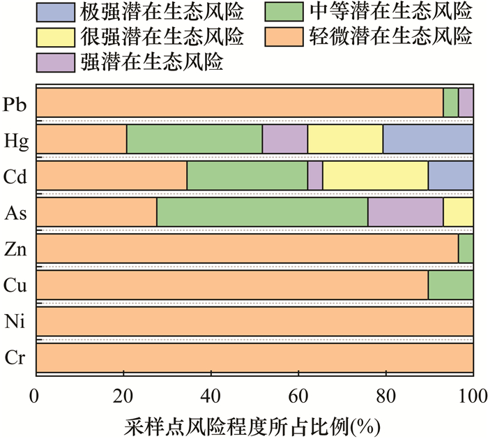 • 摘要: 云南安宁是长江经济带上游重要的工业、矿业城市,是滇中新区经济发展和生态文明建设的支点。对安宁地区地球化学水系沉积物、水文地质等方面的调查尚停留在二十世纪七八十年代,而近年来人类生产生活对生态环境造成的影响也不明确。为揭示安宁地区水系沉积物污染状况、空间分布特征与潜在生态风险,本文以2019年采集的云南安宁地区水系表层沉积物为研究对象,利用X射线荧光光谱、电感耦合等离子体质谱、气相色谱-质谱等方法系统分析其中常量元素、微量元素和16种优先控制的多环芳烃(PAHs)含量和空间分布特征,采用地累积指数法、Hankanson潜在生态风险指数法对8种典型重金属(As、Cd、Cr、Cu、Ni、Zn、Pb、Hg)以及采用质量基准法对PAHs进行了生态风险评价。结果表明:①水系沉积物中的重金属含量不同程度地高于中国全国和南方水系沉积物背景值,且变异程度较高、空间分布不均,Cd、Hg和As的潜在生态风险处于中等到严重等级;②∑PAHs平均含量为20856.0ng/g,较长江流域均值显著偏高,16种单体检出率接近100%,但PAHs总体生态风险较低,石化工业和石油燃料的燃烧是PAHs主要来源;③污染物重点潜在生态风险主要集中于普渡河流域螳螂川沿岸钢铁、化工等厂矿周边。本研究结果为加强流域工业点源污染监管、减少和控制工业污水排放提供了科学依据。