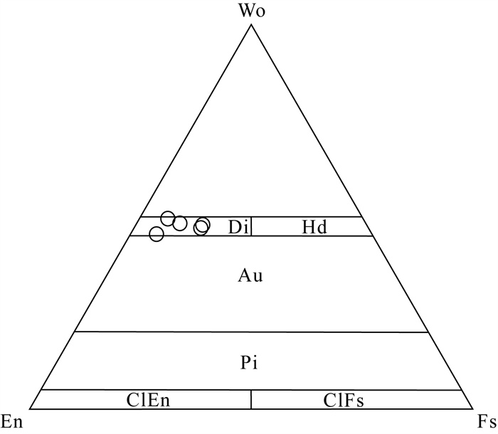 METHODS Based on detailed field and indoor microscopic observations, electron probe microanalysis (EPMA) was carried out to determine the chemical composition of skarn minerals in the Ahetala copper deposit. RESULTS: The results showed that the skarn minerals were garnet, pyroxene, wollastonite, chlorite and epidote. The EPMA results showed that garnets were grossular and andradite. Pyroxene was diopside (Di77.74-95.46), chlorite was minnesotaite. The Mn/Fe value of diopside was 0.00-0.12, indicating the copper mineralization of this deposit.