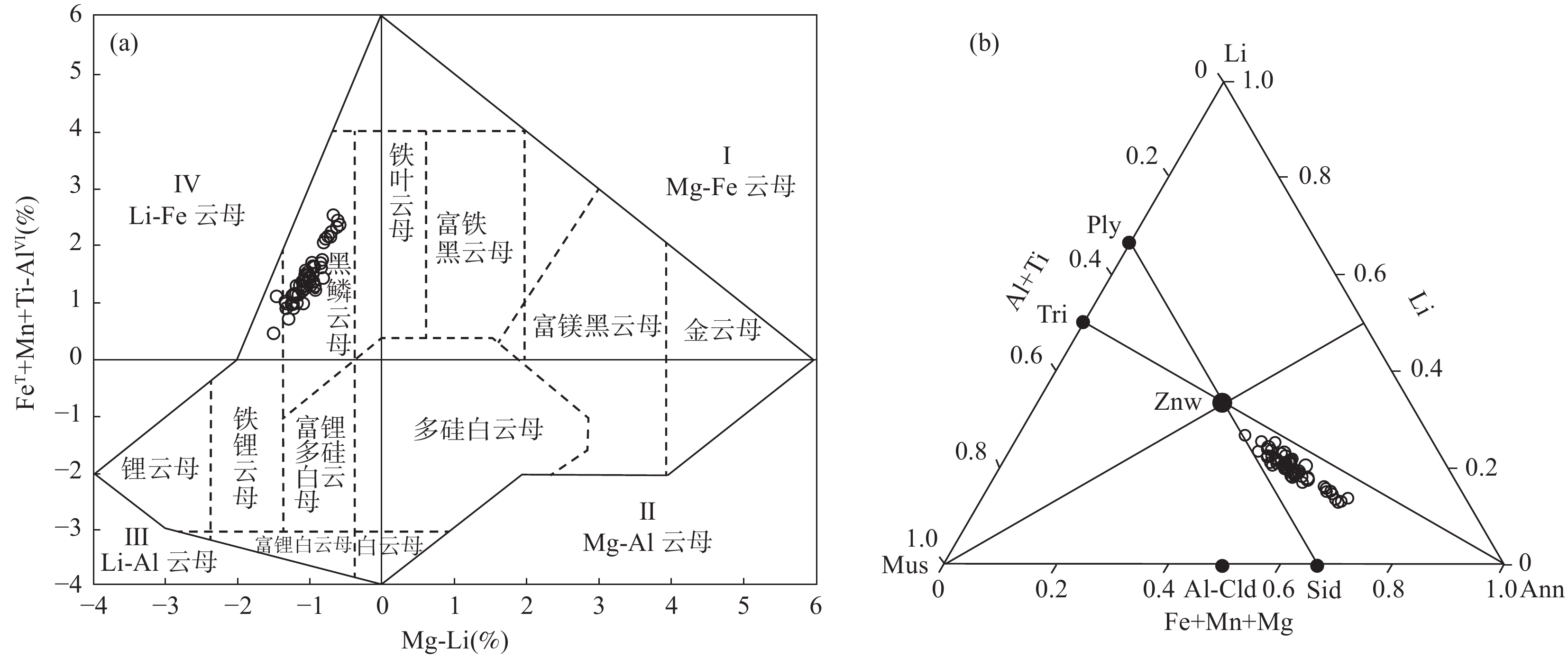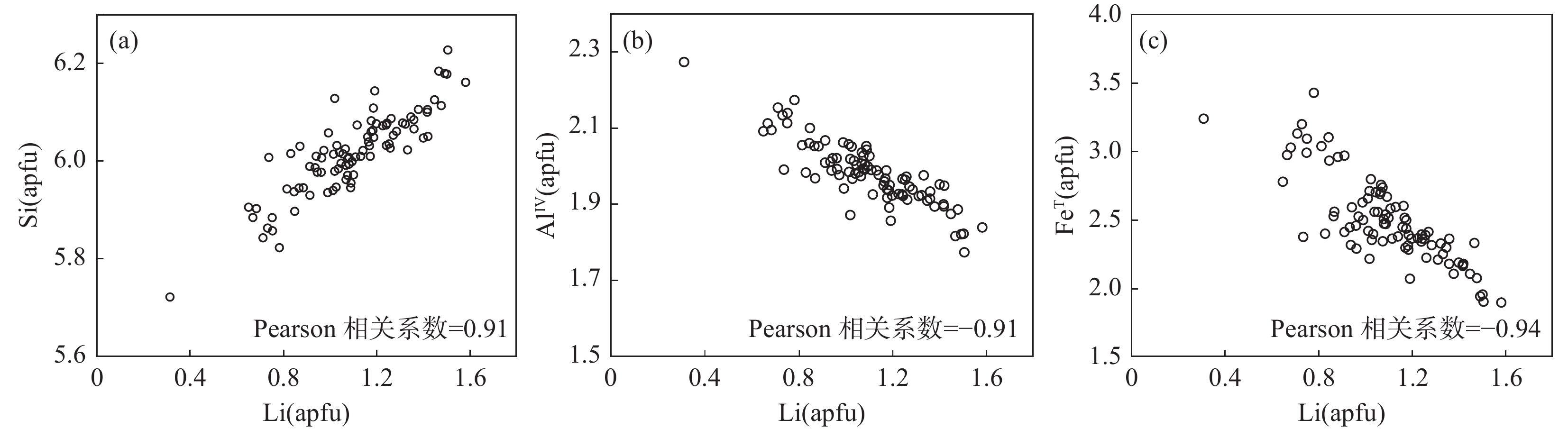 2O reaches 1.04% and mainly ranges from 0.2%−0.3%, which is of significant comprehensive utilization value. The occurrence state of lithium and the metallogenic characteristics based on the detailed microscopic observation, scanning electron microscope (SEM) images, electron probe microanalysis (EPMA) and laser ablation-inductively coupled plasma-mass spectrometry (LA-ICP-MS) is determined here. There is a potential difference between the Yanbei ore field and other domestic and international typical greisen-type lithium deposits, which develop lepidolite-ferrolepidolite series. The main Li-bearing mineral is protolithionite in the Yanbei ore field, and it is identified as high Si, Al, K, Fe and Li with no significant extreme fluid differentiation process. The Li, co-accumulated with Sn in the post-magmatic high-temperature gas-liquid stage, can be linked to the porphyritic fine-grained granite and enter mica
