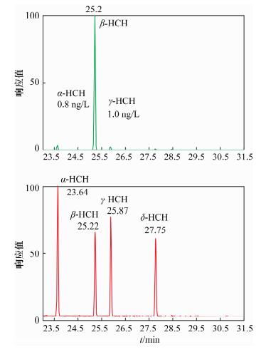 p′-DDT) and 7 kinds of polychlorinated biphenyls (PCB 28, PCB 52, PCB 101, PCB 118, PCB 138, PCB 153 and PCB 180) were the target compounds of national ground water quality investigation. Until now, the low sensitivity of Gas Chromatography with Electron Capture Detector (GC-ECD) and Gas Chromatography-Mass Spectrometry/Selected Ion Monitoring (GC-MS/SIM) technique have been applied to monitor the quality of ground water, however, these analysis methods are unable to monitor trace and ultra-trace the persistent organic pollutants targeted in ground water. In this paper, a high sensitivity analysis method of the target compounds in groundwater by solid phase disk extraction coupled with Gas Chromatography-High Resolution Mass Spectrometry (GC-HRMS) is described. The detection limits for the target compounds were 0.10-0.20 ng/L, the recovery with standards were 61.9%-93.3% and RSD (