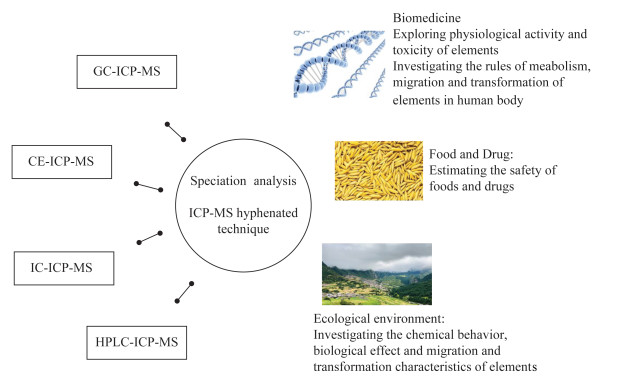 METHODSThe main methods of elemental speciation analysis by ICP-MS hyphenated techniques were summarized and compared. The methods included: (1) Gas chromatography coupled with ICP-MS (GC-ICP-MS). (2) Capillary electrophoresis coupled with ICP-MS (CE-ICP-MS). (3) Ion chromatography coupled with ICP-MS (IC-ICP-MS). (4) High performance liquid chromatography coupled with ICP-MS (HPLC-ICP-MS). The main application fields of elemental speciation analysis in China were biomedical field, food and drug safety monitoring and ecoenvironmental geochemistry.